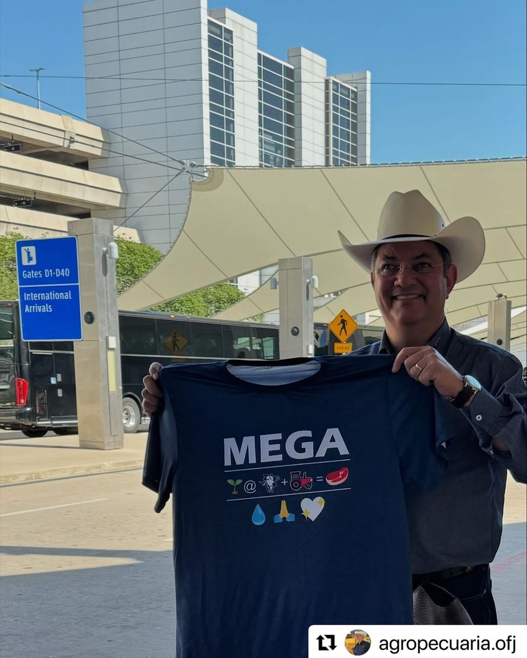 MEGAAAAA quando o seu MEGA Presidente do @gpb_oficial Oswaldo Furlan Júnior @agropecuaria.ofj está em uma viagem de estudos no módulo internacional nos Estados Unidos, em um curso que ele está fazendo como Pecuarista , e ele faz a surpresa e faz um click com a camiseta personalizada que uso e dei de presente para ele na cor azul! MEGAAAAA eu fiz para ele da MEGA.